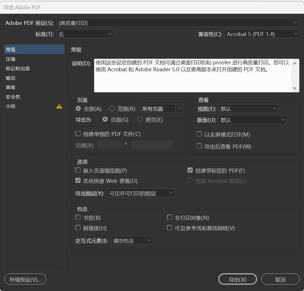 - 导出图层:控制导出图层的方式(通常为减小文件体积会选择可见并可打印的图层